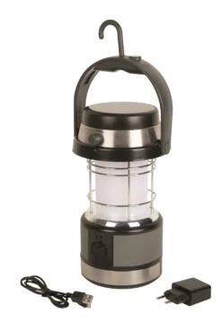 De Antares Solar reislamp van Bo-Camp is een tafellantaarn met een zonnepaneel. Door dit zonnepaneel kunt u deze lamp overdag opladen voor gebruik om donkere momenten, daarnaast kunt u de Li-Ion batterij van deze lamp opladen door middel van netstroom of vanuit uw auto. Deze robuuste lamp maakt gebruik van high power LED’s met een warme lichtkleur waardoor u gezellig rond deze lamp kunt zitten. De lamp heeft een traploze dimmer en een wit matte kap waardoor dit zachte licht altijd naar uw eigen wensen kan worden ingesteld. In de handgreep aan de bovenzijde zit niet alleen een inklapbaar ophanghaakje maar ook een kompasje. De adapter en de auto aansluiting kunnen onderin de lamp worden opgeborgen. U kunt deze lamp ook gebruiken om uw telefoon aan op laden